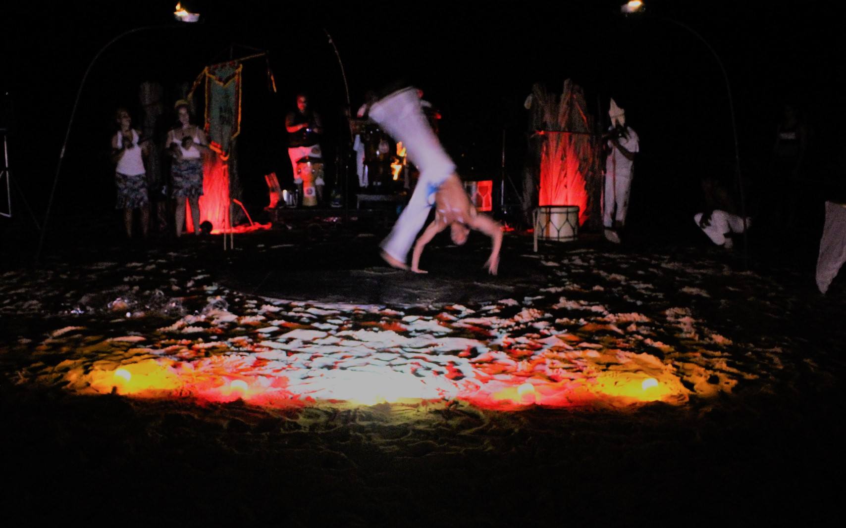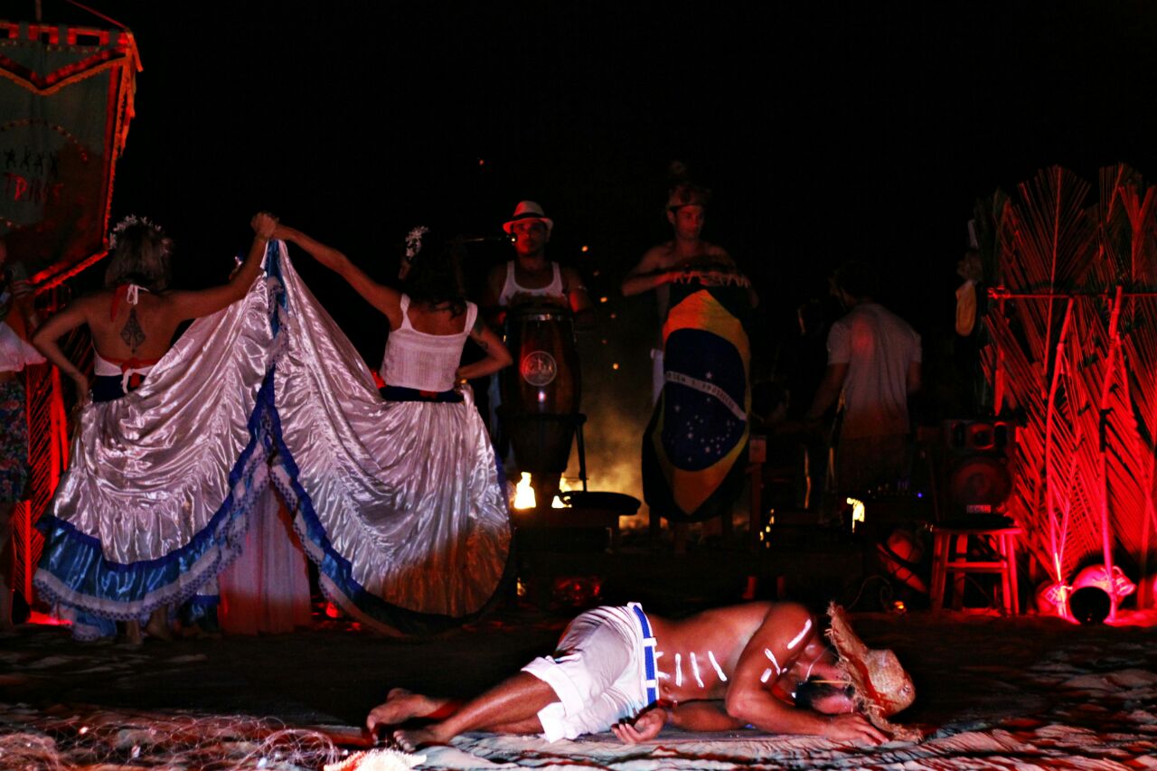 Somos um Grupo de Cultura Popular formado por capoeiristas, dançarinos, instrumentistas, atores e cantores que estudam a cultura afro-brasileira e nordestina, se expressando em um espetáculo cênico, com dança, música, capoeira, pirofagia e poesias. Com mais de 27 anos, o grupo evolui com a participação de cada integrante. Desde o encontro dos mineiros, formandos do Mestre Mão Branca, com os jericoacoarienses, Marujo, Pipa, Das Dunas e Tuto, o grupo agrega crianças e adultos. No início com uma base completamente da capoeira, apresentando para turistas e moradores a cultura afro-brasileira. Hoje, organizado pelo grupo de capoeira Trijo Jeri, nascido dos meninos nativos da terra, e gerido por Mestrando Erlin, agregando a cultura típica nordestina com muita música, forró, coco, teatro e cordéis.O grupo busca preservar e valorizar nossas culturas tradicionais, mantendo viva a memória cultural dos povos da região, agregando crianças e adultos moradores locais. Apresentando aos turistas uma cultura viva e pulsante na vila de Jericoacoara. Os espetáculos são frequentes, além dos remunerados, fazemos vários gratuitos pelas praças e praia.