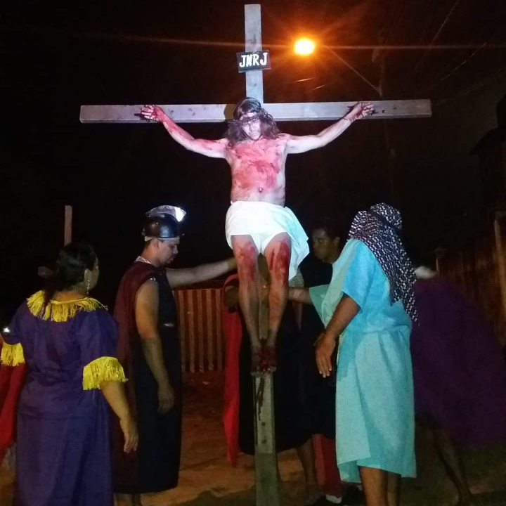 Em 1987, em um sábado à tarde, estavam reunidos Dona Isabel (atualmente Mestra da Cultura do nosso Município reconhecida pela Sec. de Cultura e Turismo de Caucaia, através da Lei Aldir Blanc), seu Batista, Dona Lurdinha entre outras pessoas que atuavam na evangelização das família da aldeia, planejando os terço de São José entre outros eventos para que o povo não esmorecer, assim surgiu aquela ideia de fazer a encenação das via sacras nas estrada principais da aldeia, o combinado foi aceito por todos os envolvidos e a partir deste ano de 1987 todos os anos são realizados a encenação da Paixão de Cristo na Aldeia da Jandaiguaba. Á convite o grupo PAIXÃO DE CRISTO JANDAIGUABA já se apresentou em outras aldeias da região.