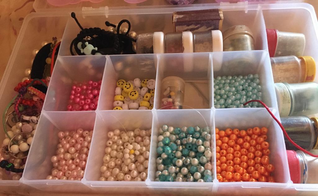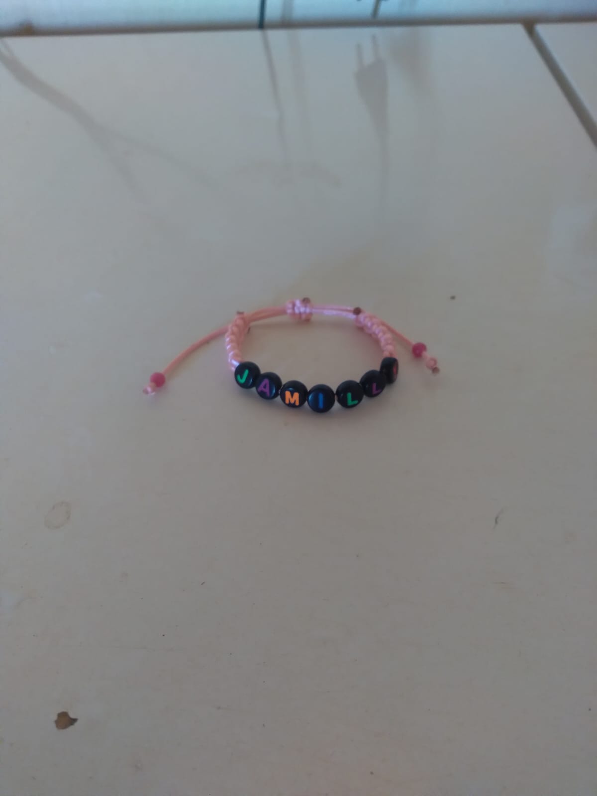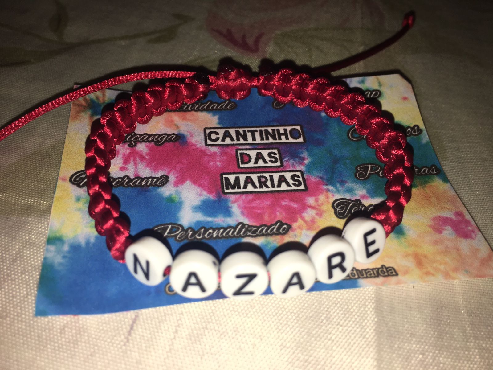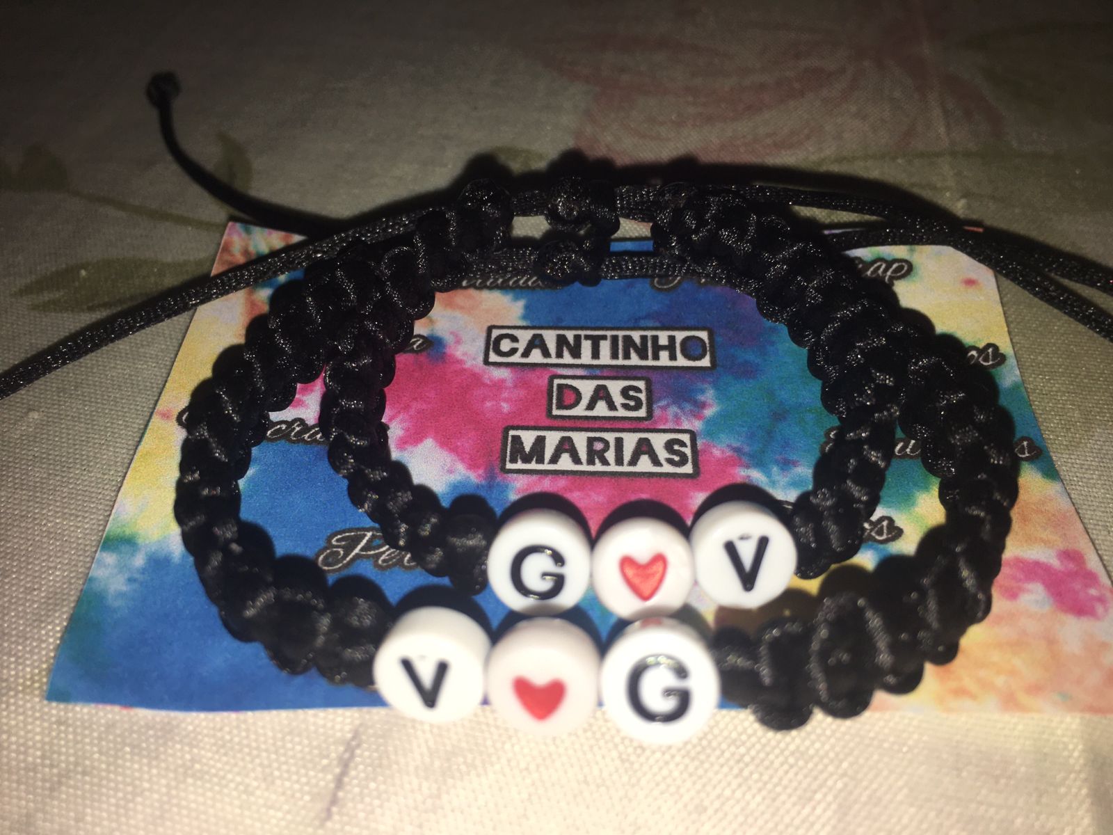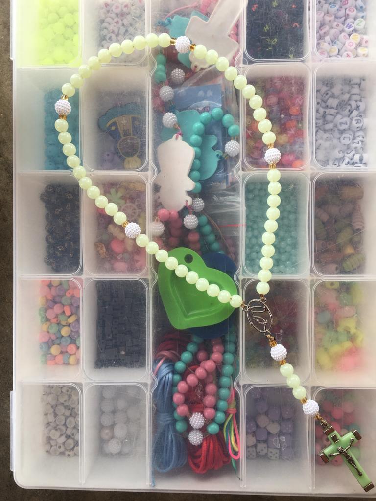 Fazemos diversos modelos de pulseiras, strap cordinha, chaveiros, phone strap, e terços utilizando miçangas e macramê. Fazemos os produtos personalizados com o nome do cliente também. Nosso trabalho é recente desde janeiro de 2023. Nós iniciamos após ganharmos um kit de presente de aniversario e começamos a criar modelos e vender para nossas colegas da escola e logo algumas pessoas da comunidade passaram a se interessar pelos produtos. Então investimos o que ganhamos para comprar mais miçangas, linhas e fios para produzir. Sempre estamos pesquisando modelos na internet e aprendendo mais. Somos muito criativas e sempre tivemos interesse em empreender.Galeria