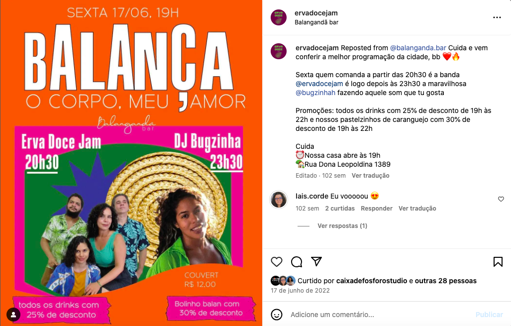 Passeando pelo repertório do rock tropicalista, samba-rock, blackmusic, reggae, psicodelia nordestina, pessoal do ceara e muito mais. Com arranjos inesperados e sem perder a delicia dos solos e improvisos de uma JAM, traz pra show que vai da VIBE curtição ao FRENESI.