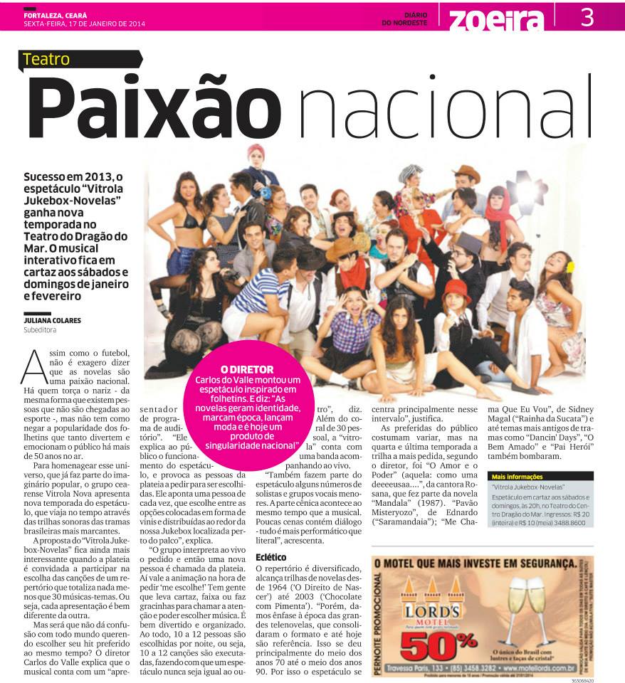 Carlos do Valle é formado no Curso Técnico de Produção Cultural (CENTEC/Lab. de Produção - Vila das Artes). É fundador e diretor musical dos grupos Vitrola Nova (2009), Folk - Canções de Antigas Novidades (2012) e Cherry Boys (2016), corais cênicos atuantes na cidade de Fortaleza/CE. Além disso, desenvolve outros projetos independentes, como recitais litero-musicais, aulas particulares de canto, entre outros. Foi integrante da primeira turma do Curso Técnico em Música (Instituto Federal do Ceará) e também estudou Ciências Sociais (Universidade Estadual do Ceará) e Licenciatura em Música (Universidade Federal do Ceará).Vídeos