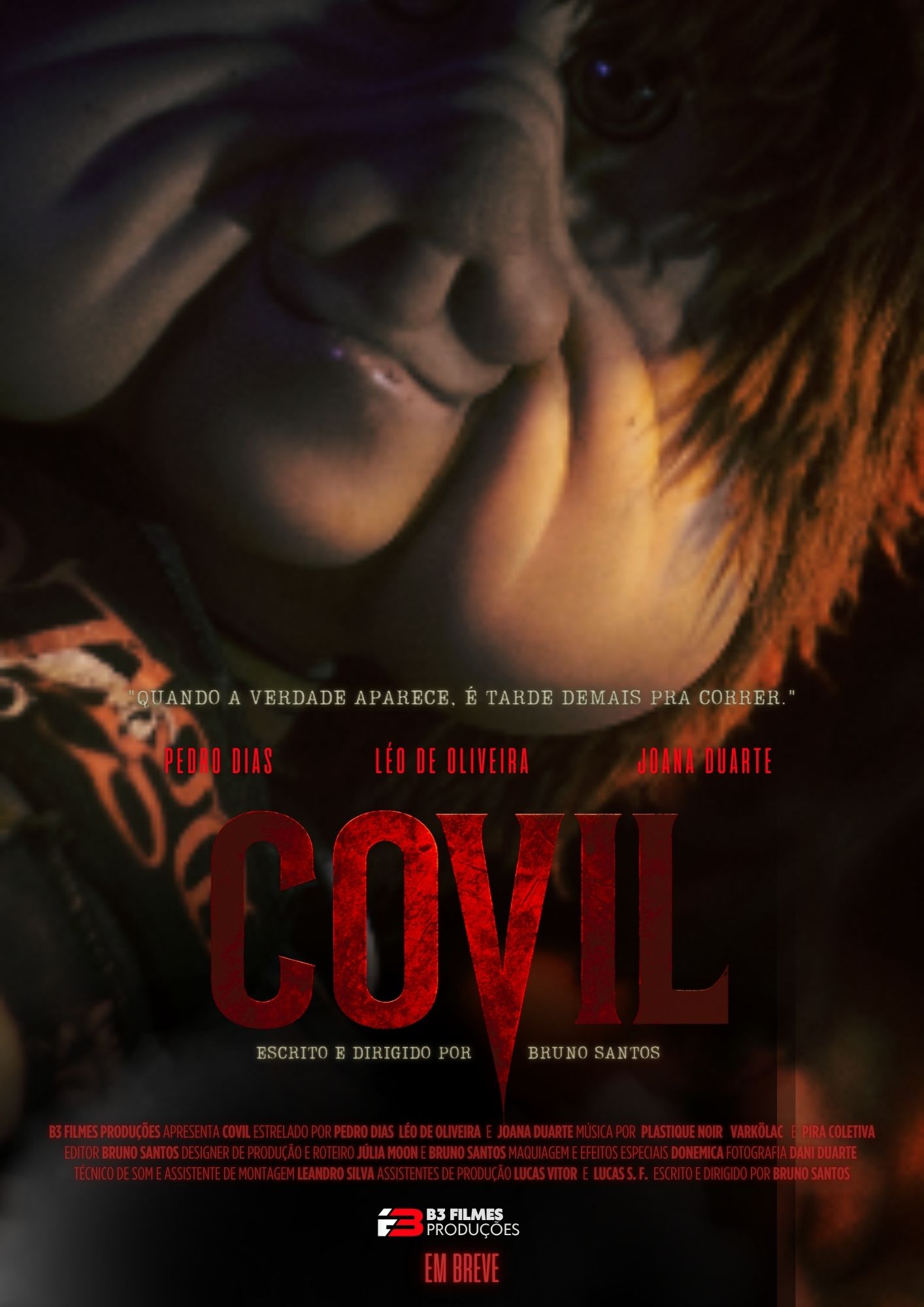 Covil (em produção): Curta-metragem de caráter autoral e atmosférico, que busca aprofundar-se em temas como o medo, a clausura e a psique humana diante de situações-limite. A obra está em fase de gravações, unindo aspectos de cinema de gênero e elementos visuais marcantes, reafirmando o compromisso da B3 Filmes em produzir narrativas originais que dialoguem com a estética sombria e psicológica do cinema contemporâneo.