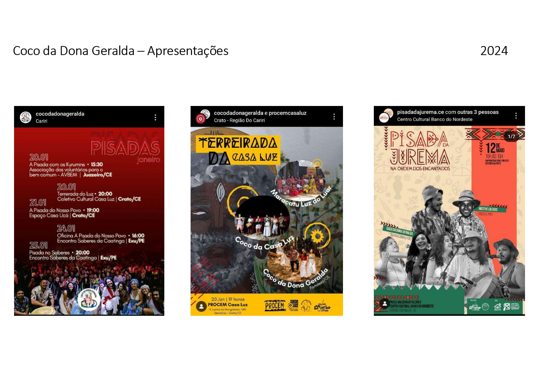 Sua presença nesses coletivos reflete um compromisso com a coletividade, com a manutenção das memórias afro-indígenas e com a continuidade das práticas culturais que sustentam a vida comunitária.