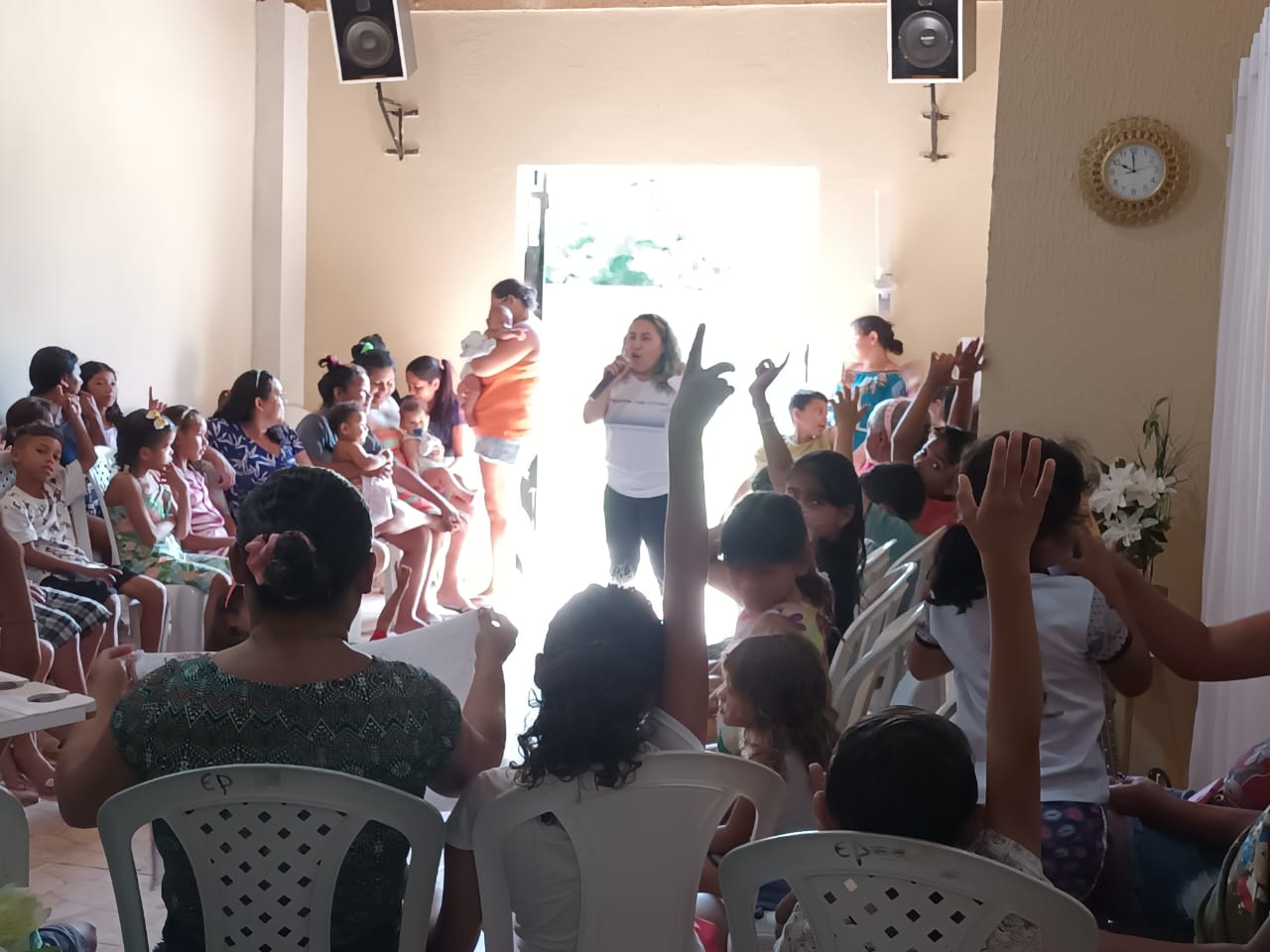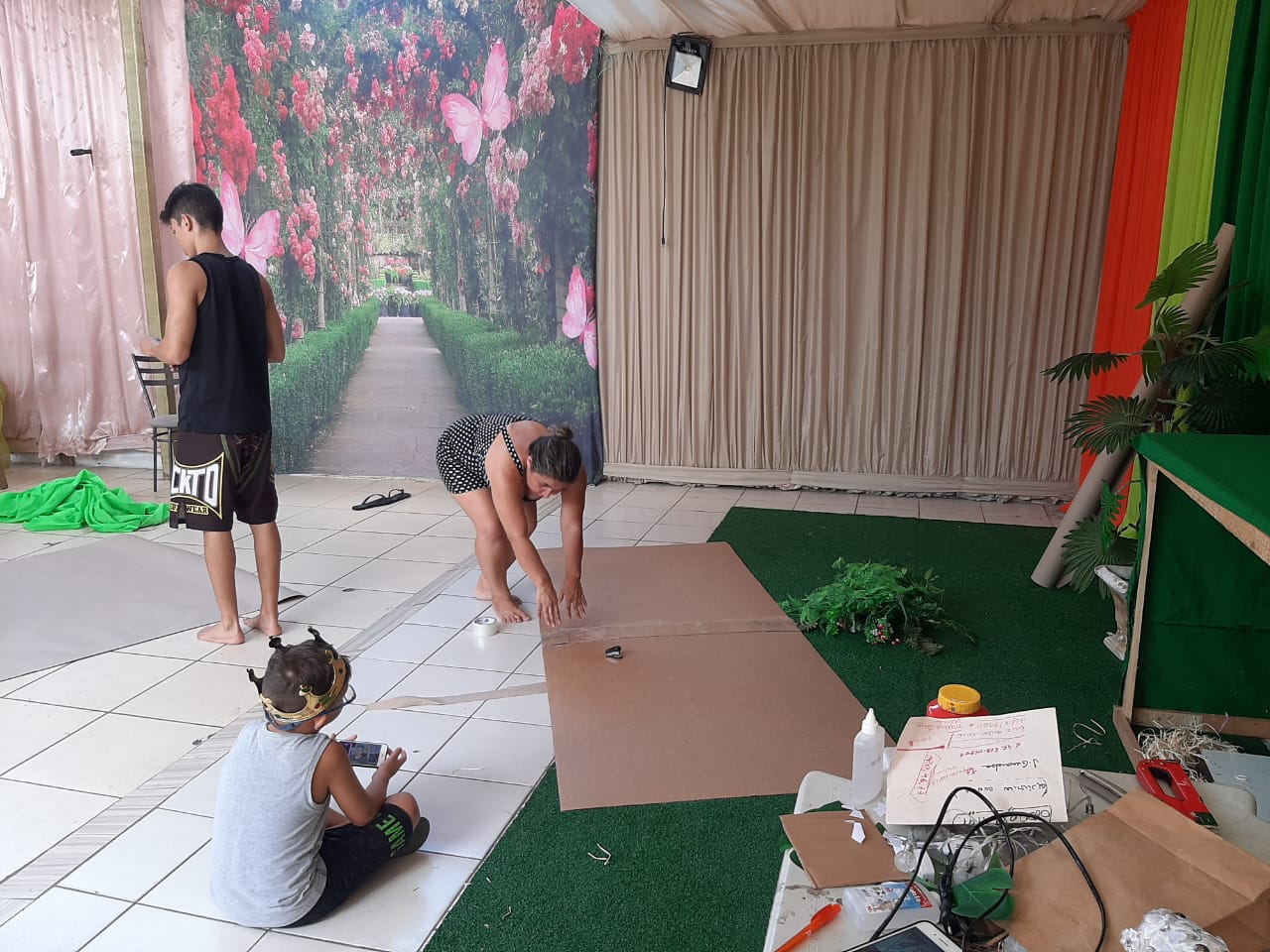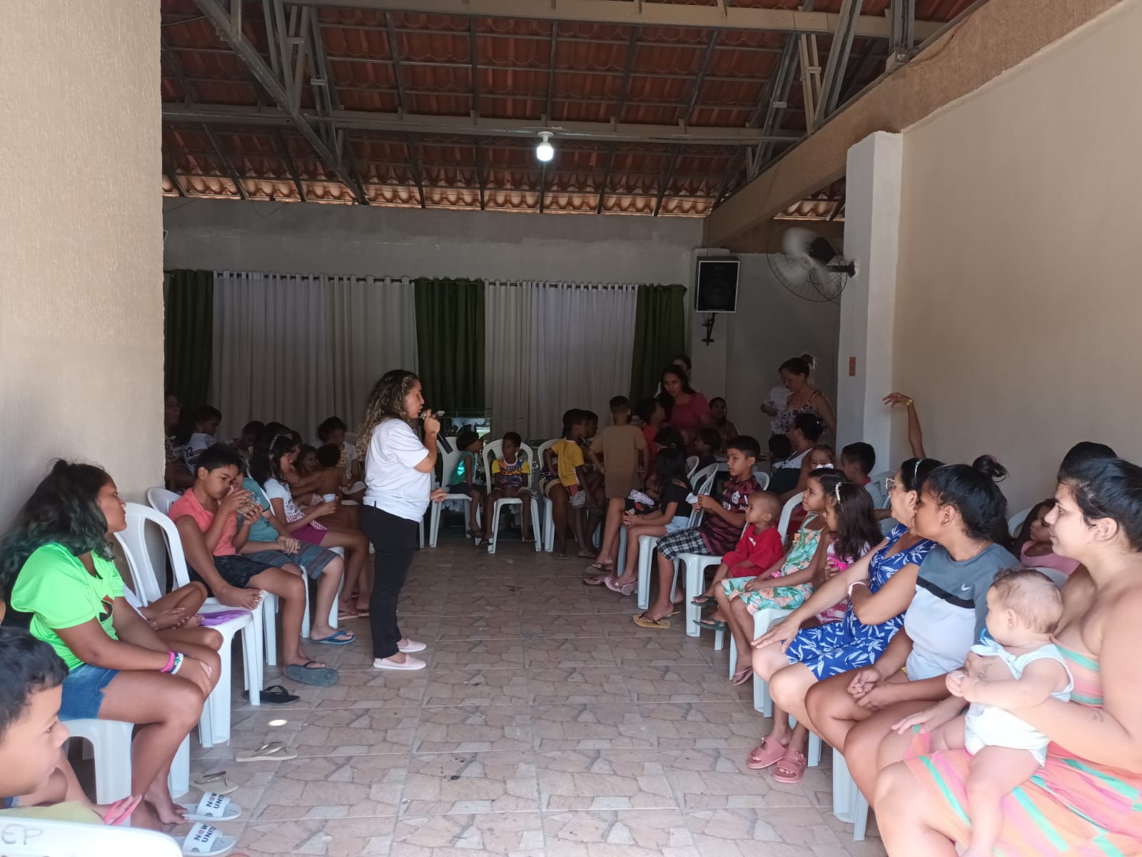 atividade sobre o uso consciente de agua com apresentação do teatro de fantoches para as crianças do residencial.