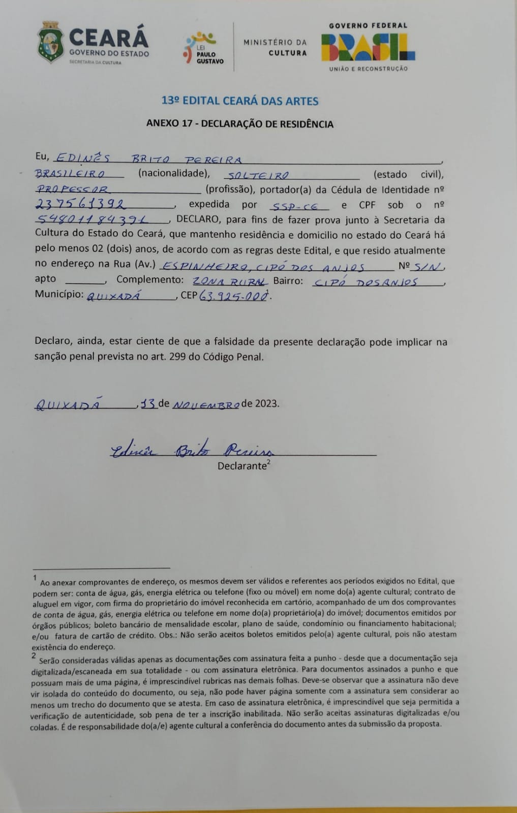 vídeo de autorização do Grupo ao membro EDINÊS BRITO PEREIRA para concorrer ao Edital /24