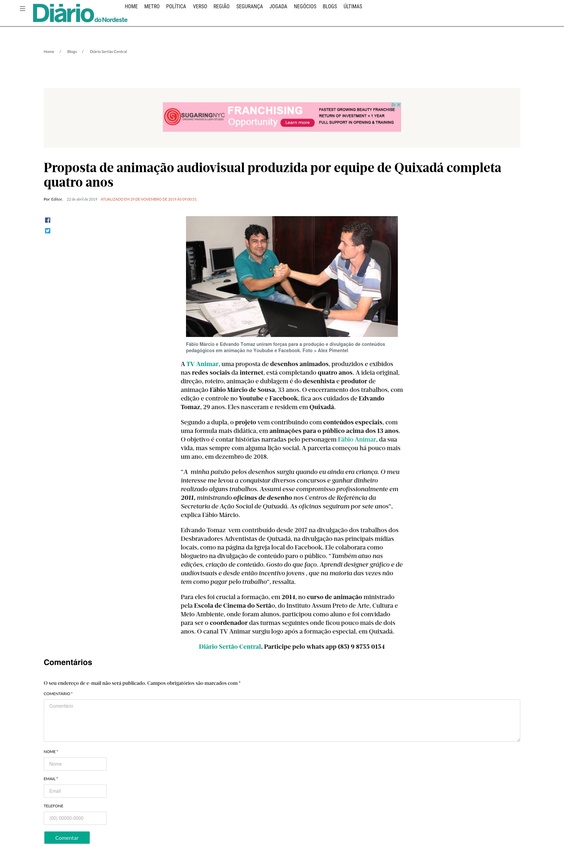 ● Editor do canal Tv Animar Fábio Animar,2020