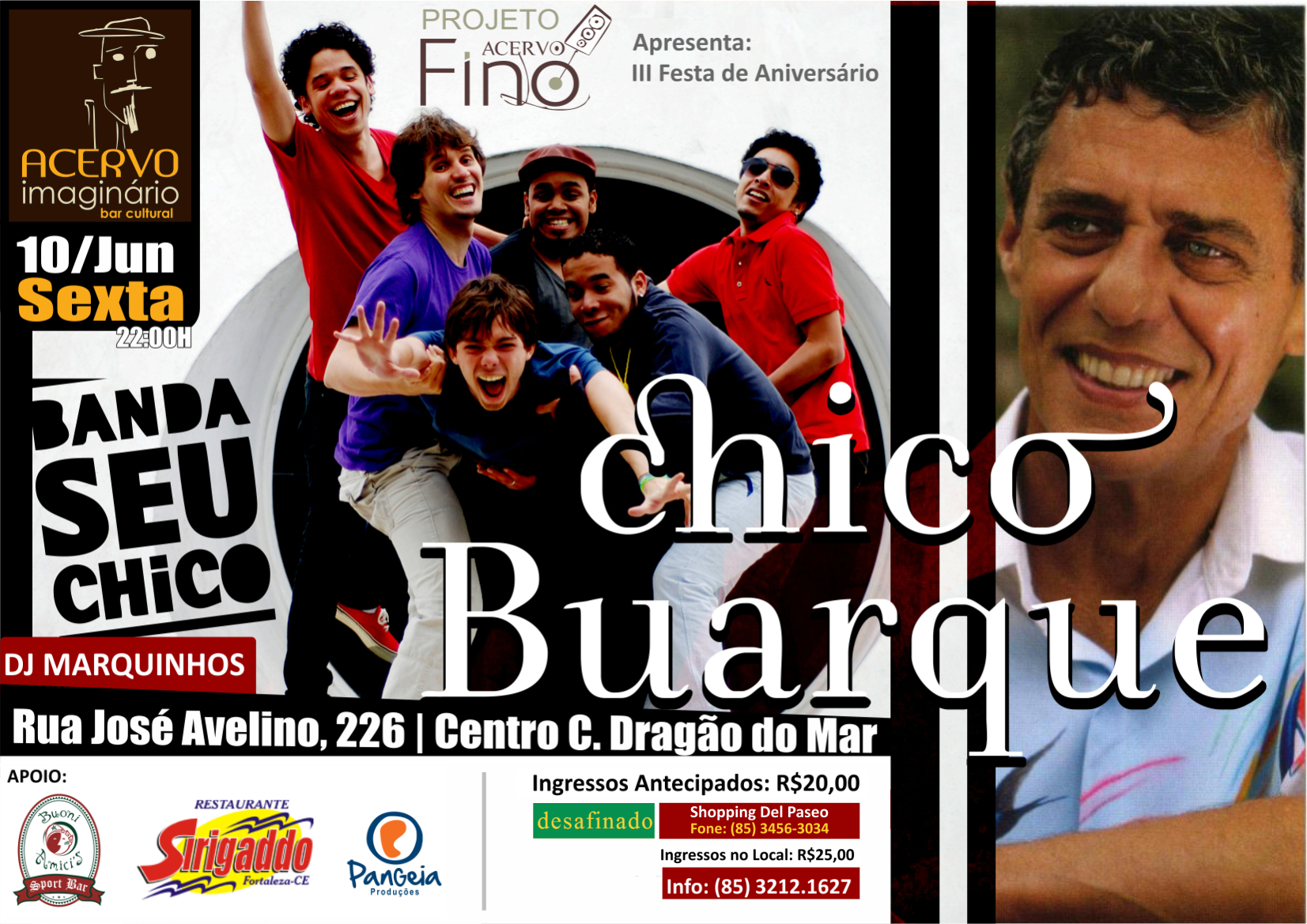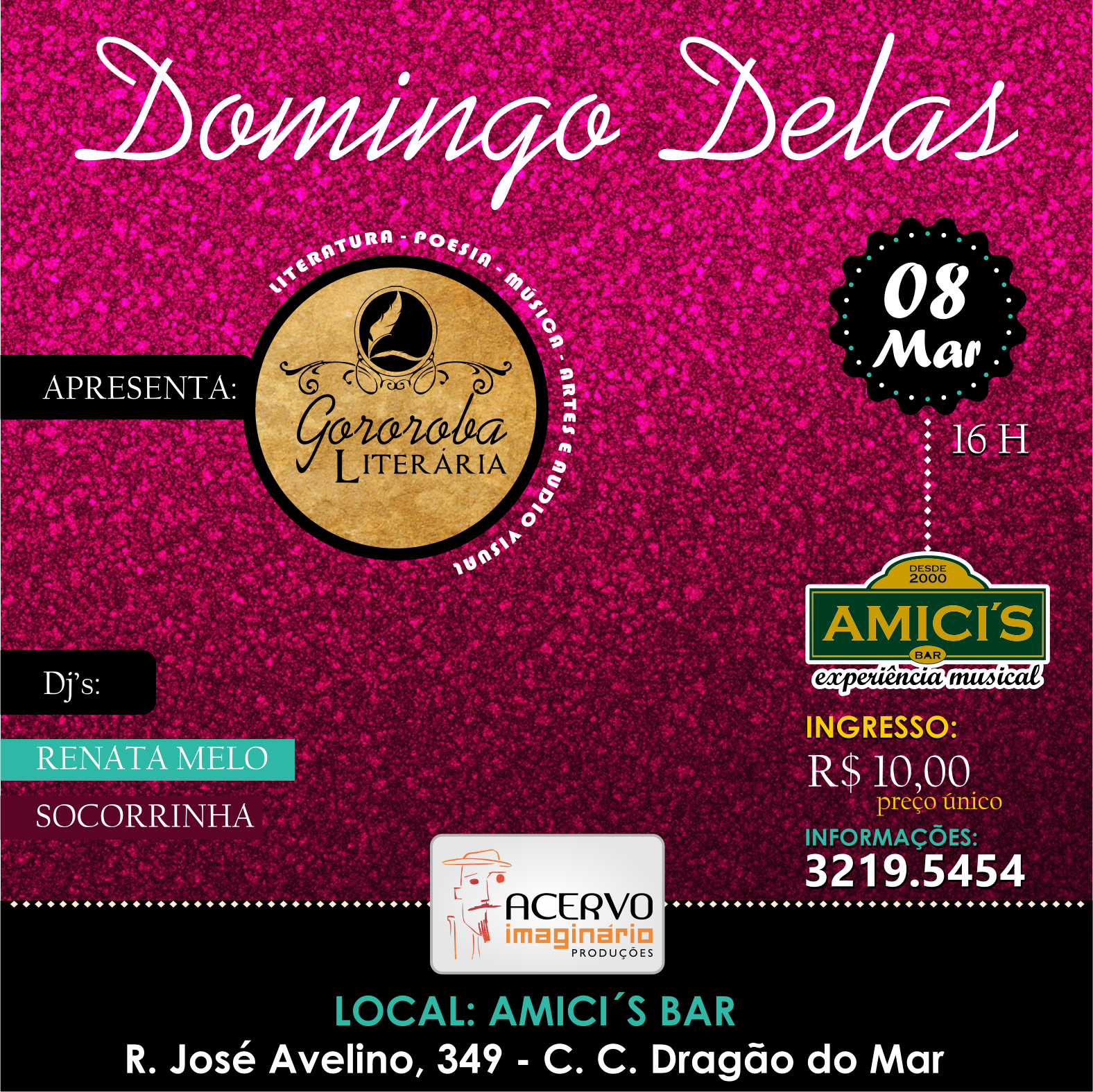 No Acervo Imaginário Bar Cultural, produziu o Oi Blues By Night (da Oi), por onde passaram artistas como Celso Blues Boy (Rio de Janeiro), Donny Nichilo (Chicago), Eddie C. Campbell (EUA) e Lancaster (SP). Outras produções foram o cantor Curumin (SP), Pantico Rocha (CE), Banda Seu Chico (PE), Luxo da Aldeia (CE), Armandinho (do trio elétrico Armandinho, Dodô e Osmar-BA), Kid Vinil (SP), Artur Menezes (CE), Os Alfazemas e Os Transacionais, duas das melhores bandas de Fortaleza. Com Os Transacionais segue em uma parceria de 10 anos, onde, ao longo desse tempo, fazem a Festa dos Sem Namorados, que em 2018 terá sua 10ª edição.