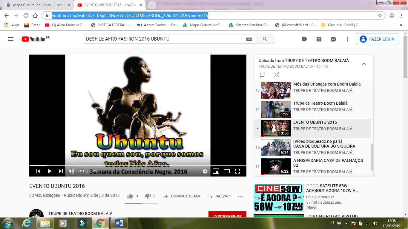 Links de espetáculos, projetos, ações culturais e outros.