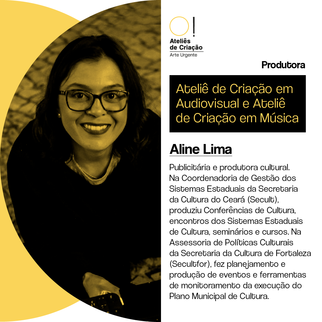 Aline Lima é publicitária e produtora cultural, trabalha em projetos culturais voltados ao desenvolvimento humano via arte e comunicação.