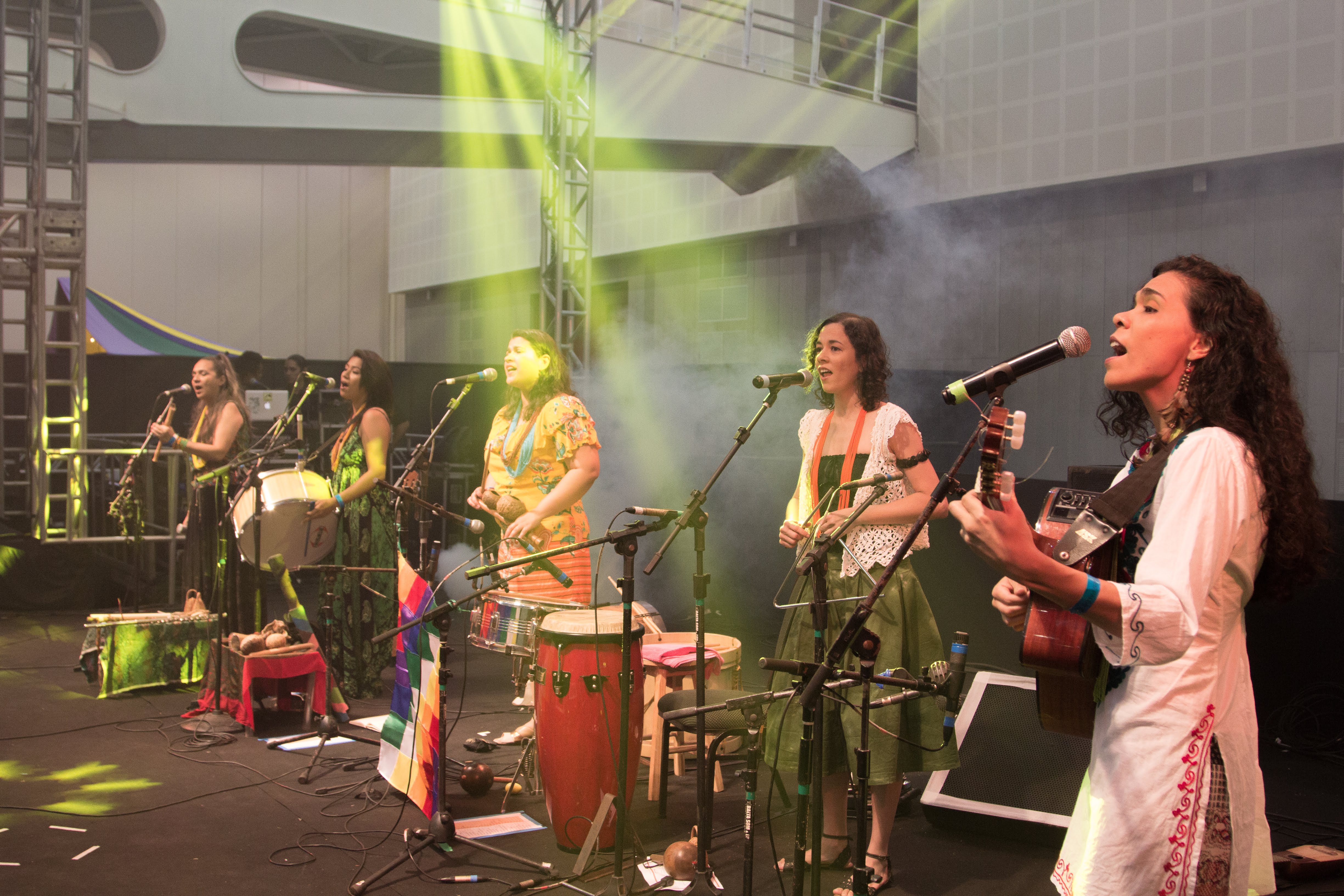 O show "SEMILLA", cujo repertório é essencialmente dançante, traz arranjos elaborados coletivamente, e é composto pelo diálogo entre estilos e gêneros musicais tradicionais, como xote, baião, coco, ciranda, maracatus, jongo, lundu, carimbó, salsa, huayño, chacareras, etc... e suas transversalidades.