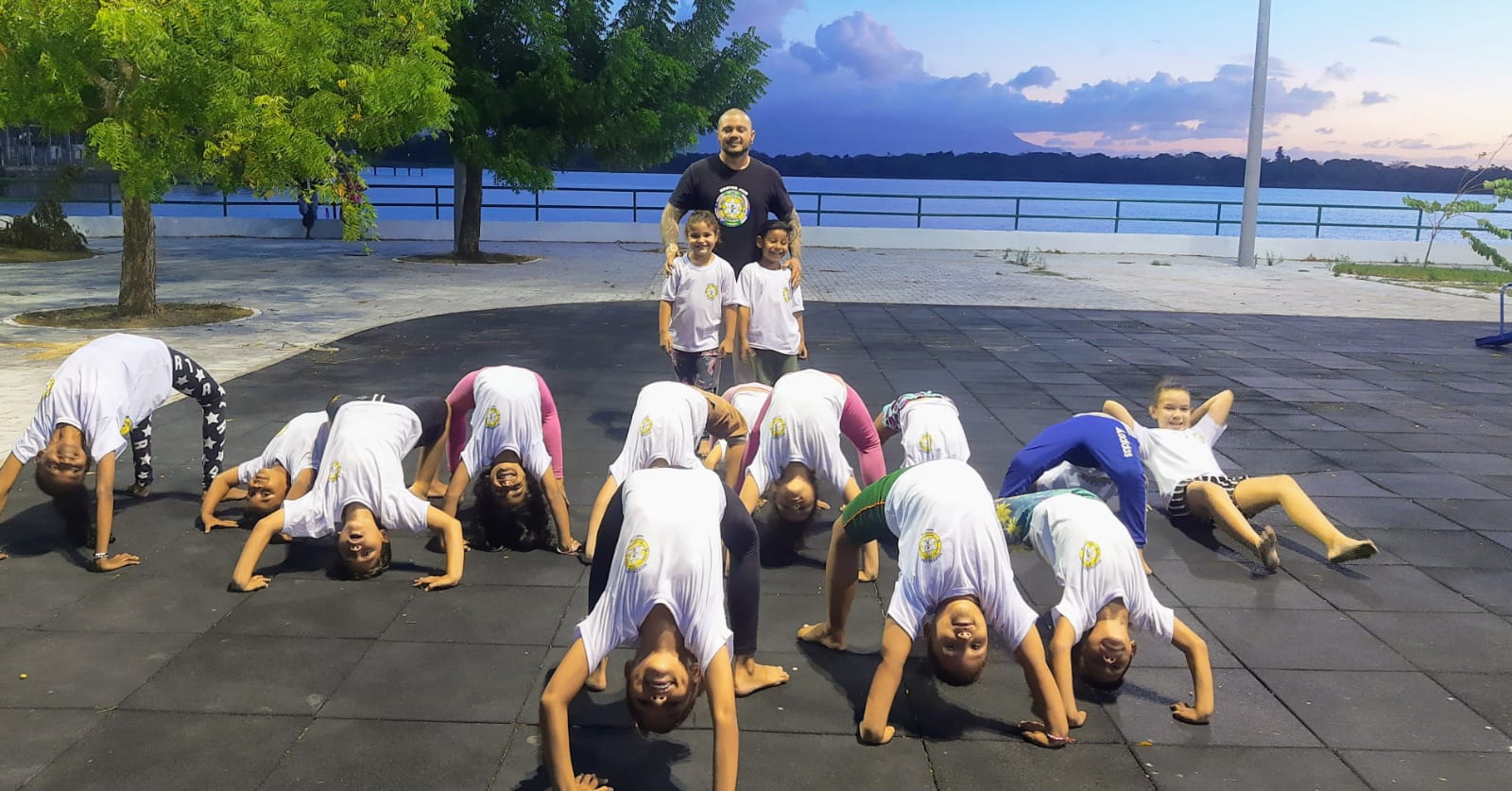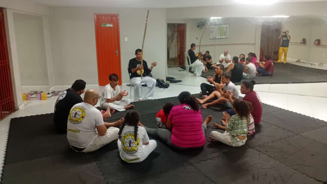 Treino de Capoeira para alunos iniciantes - independente da idade, esta aulas tem o objetivo de passar noções básicas da capoeira.Treino de Capoeira para alunos iniciados – independente da idade, treinos para os alunos que já receberam a graduações na Capoeira