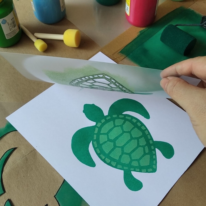 A atividade consiste em uma experimentação da gravura a partir de matrizes de acetato, rolinhos de esponja e guaches para impressão sobre papel. Sobre uma área de papel cráft fixado ao chão, será montado um campo para entintagem feito com 12 lâminas de acetato presas com fita crepe, dispondo de 12 cores de tinta guache e 24 rolinhos de esponja. As matrizes, 50 peças feitas em lâminas de acetato com imagens vazadas, estarão disponibilizados pela extensão do papel cráft e poderão ser combinados entre si para a criação de novas imagens.