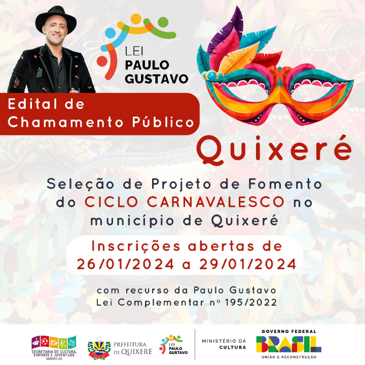 Edital de Chamamento Público para a Seleção de Projeto de Fomento do Ciclo Carnavalesco no município de Quixeré