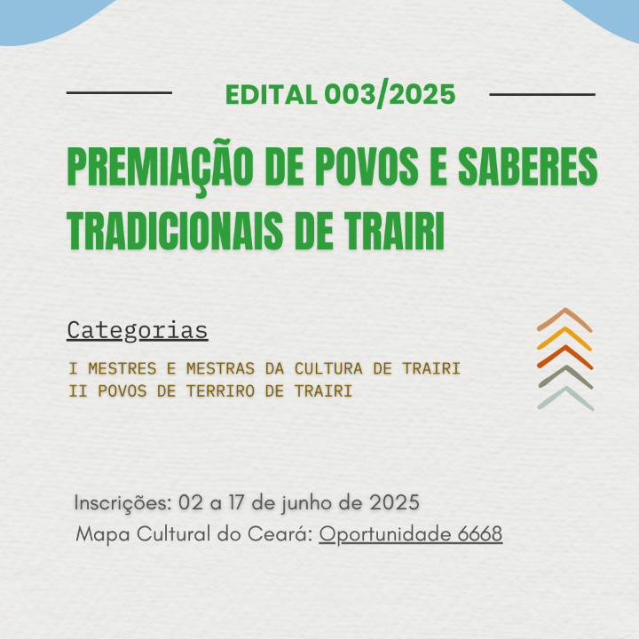 EDITAL DE CHAMAMENTO PÚBLICO Nº 003/2025 – PREMIAÇÃO DE POVOS E SABERES TRADICIONAIS DE TRAIRI