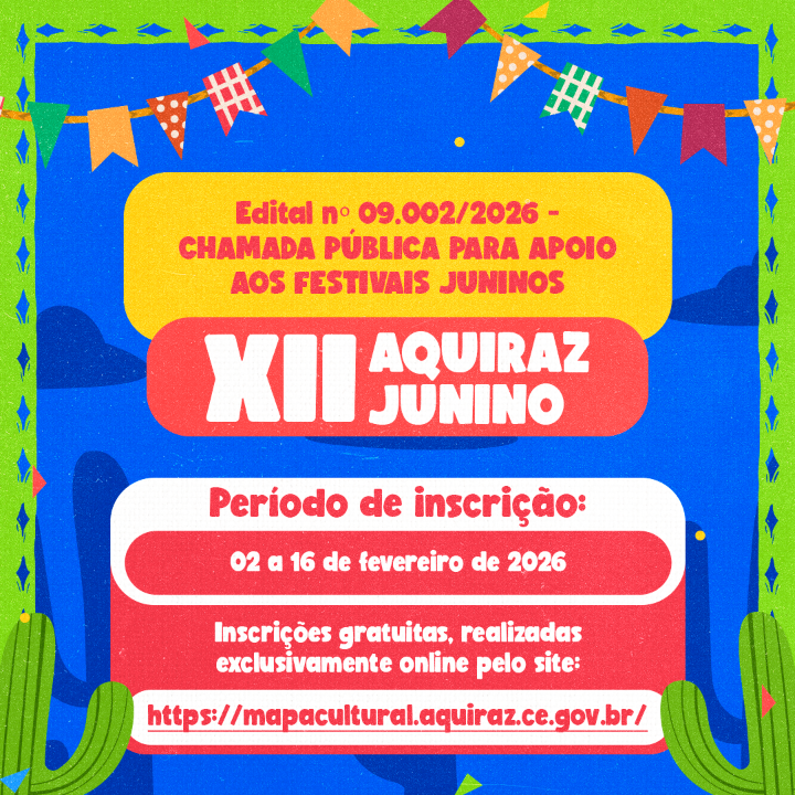 realização da CHAMADA PÚBLICA PARA APOIO AOS FESTIVAIS JUNINOS – XII AQUIRAZ JUNINO, cujo objetivo é apoiar projetos culturais voltados a difundir as tradições juninas em Aquiraz.